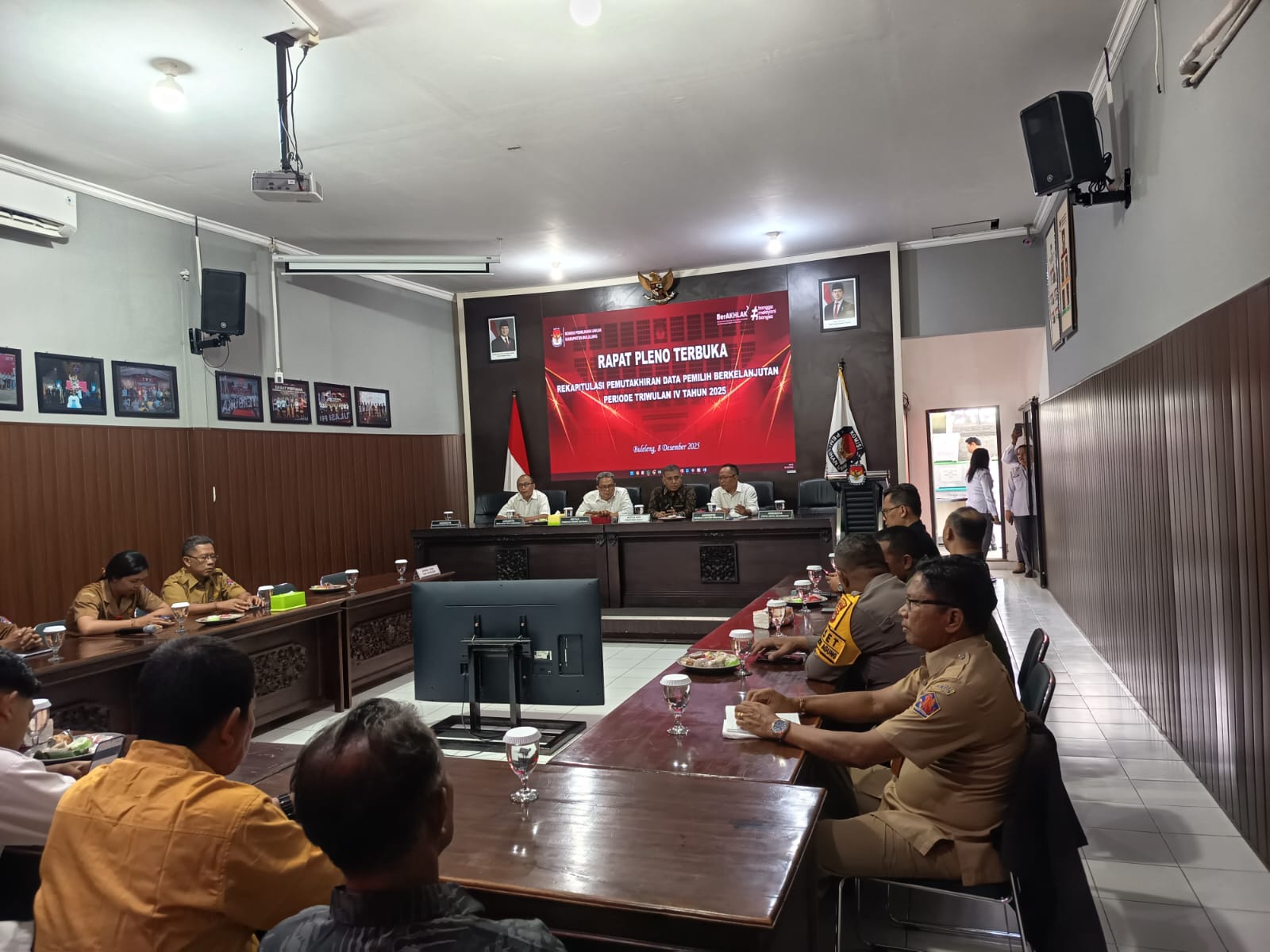 Dalam pleno tersebut, KPU Kabupaten Buleleng memaparkan hasil pemutakhiran data pemilih Triwulan IV Tahun 2025, yang tercatat sebanyak 608.863 pemilih. Data ini kemudian akan menjadi dasar dalam penyusunan dan penyempurnaan data pemilih untuk periode berikutnya.
