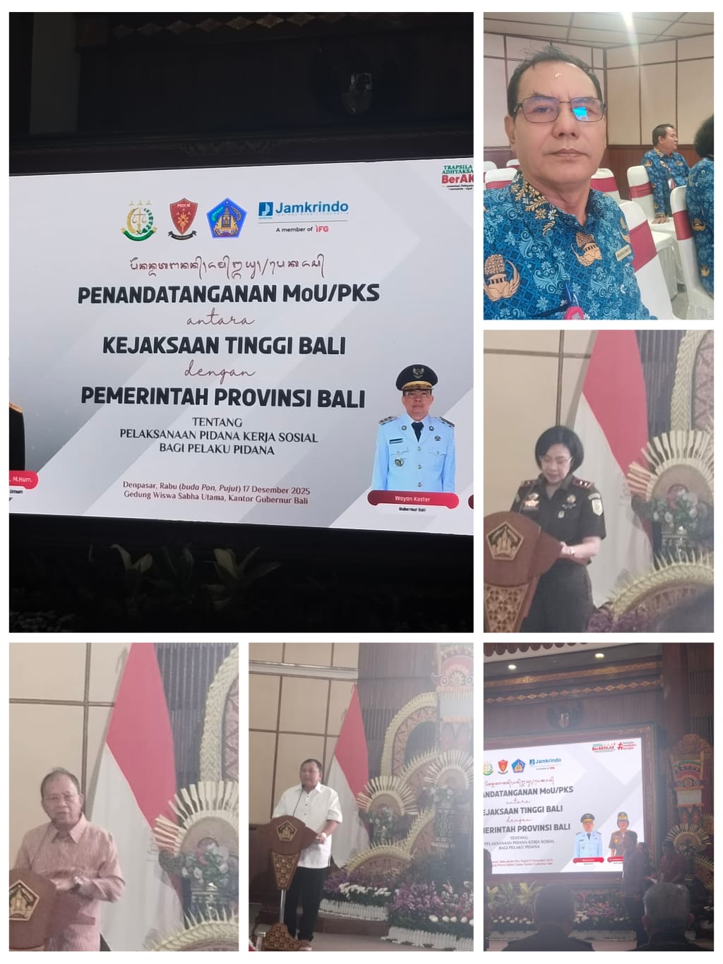 Acara tersebut dihadiri oleh Sekretaris Jaksa Agung Muda Tindak Pidana Umum (Jampidum), Kepala Kejaksaan Tinggi Bali beserta jajaran, Gubernur Bali, Sekretaris Daerah Provinsi Bali, Wakil Ketua DPRD Provinsi Bali, para Bupati dan Wali Kota se-Bali, Kepala Kejaksaan Negeri se-Bali, serta PT Jamkrindo.